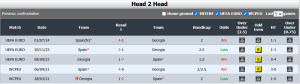 သမိုင်းကြောင်း: စပိန်သည် ဂျော်ဂျီယာနှင့် ယှဉ်ပြိုင်ခဲ့သော မကြာသေးမီက ယှဉ်ပြိုင်မှု ပွဲစဉ်အားလုံးကို ဂိုးပြတ်ဖြင့် အနိုင်ရရှိခဲ့သည်။ အဆင့်အတန်း ကွာဟချက်မှာ ရှင်းလင်းနေဆဲ ဖြစ်သည်။