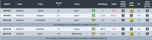 Handicap / Spread Spain −1.5 သို့မဟုတ် −2 AH ပိုမိုကောင်းမွန်သော အမြတ်အစွန်းများအတွက်။ စပိန်သည် အိမ်ကွင်းတွင် Handicap ကို မကြာခဏ ဖုံးအုပ်နိုင်လေ့ရှိသည်။